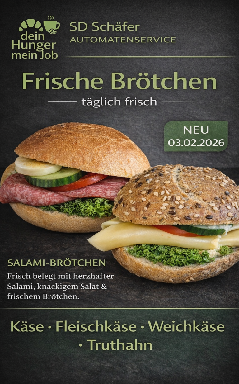 - Frische Brötschen (Salami, Käse, Weichkäse, Fleichkäse, Truthahn)